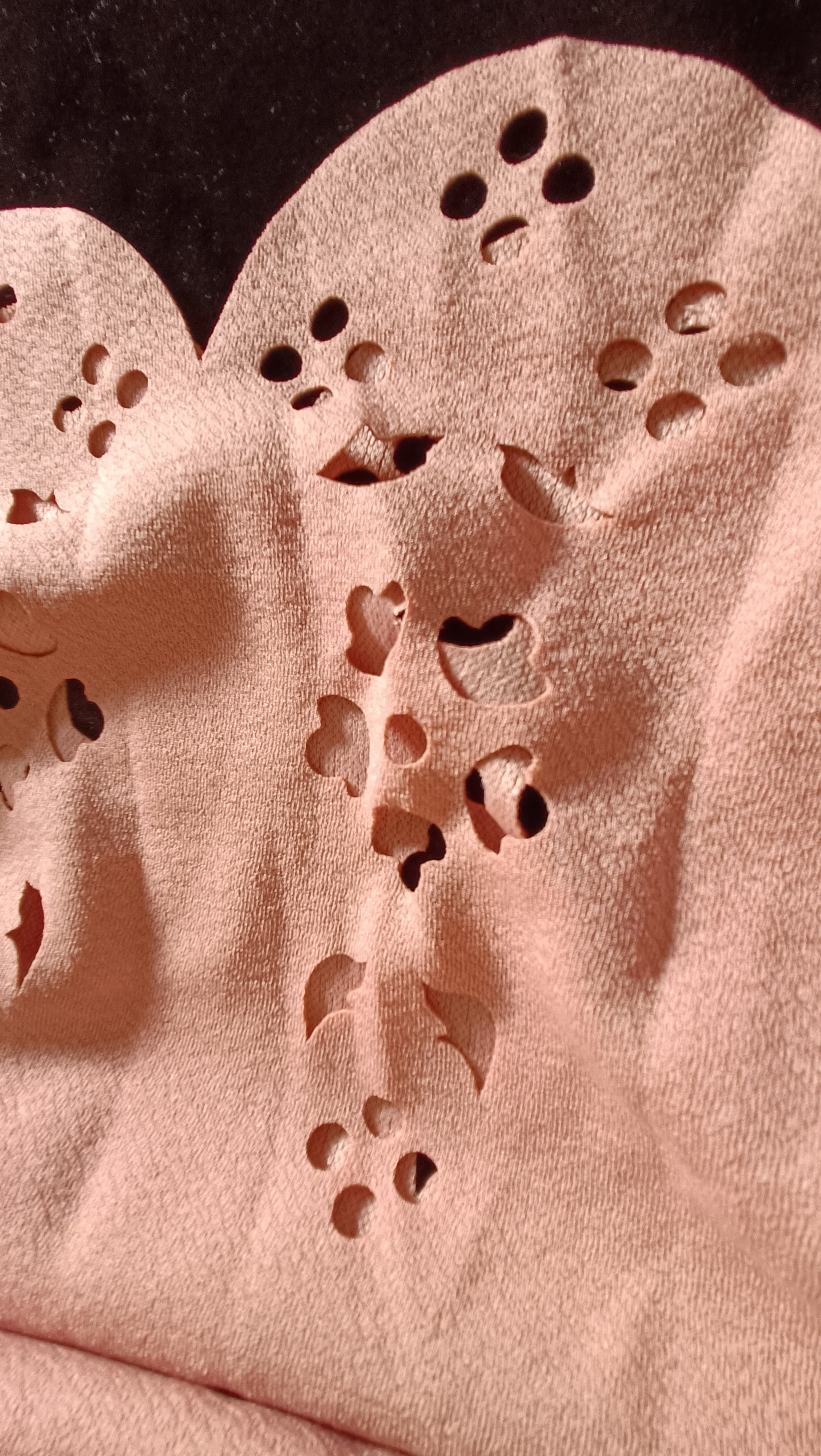 Dark Peach Short Sleeve Top with Scalloped Hem and Cut Out Detail
